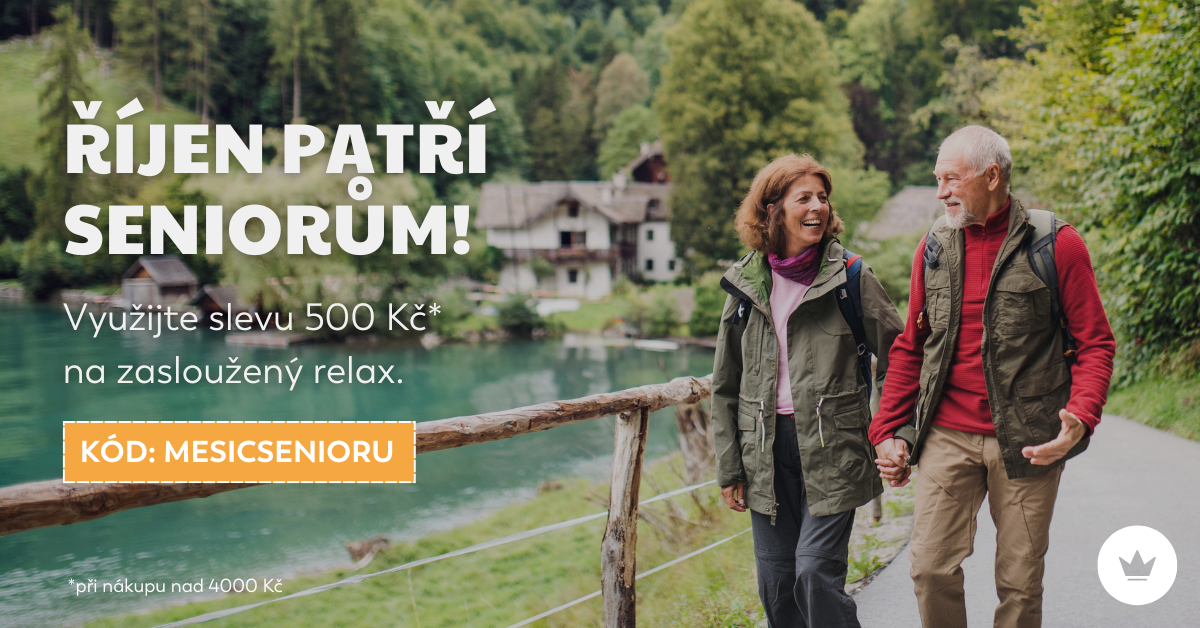 Jako malé poděkování jsme si pro vás připravili speciální akci. S kódem MESICSENIORU získáte 500 Kč slevu při nákupu nad 4 000 Kč. Akce končí již 31. 10., tak si vyberte pobyt co nejdříve.